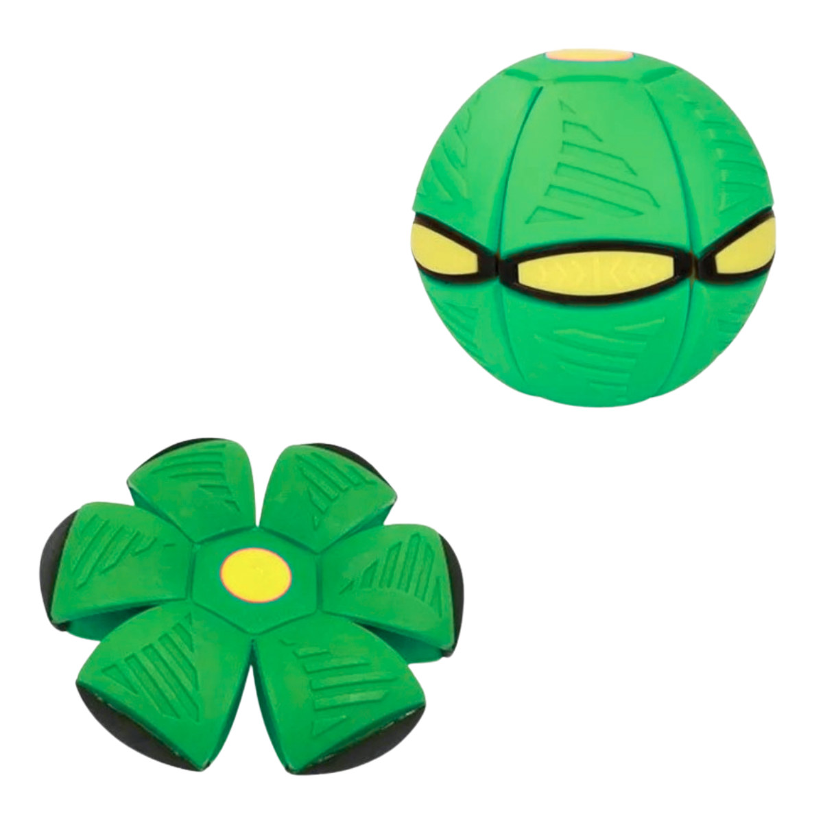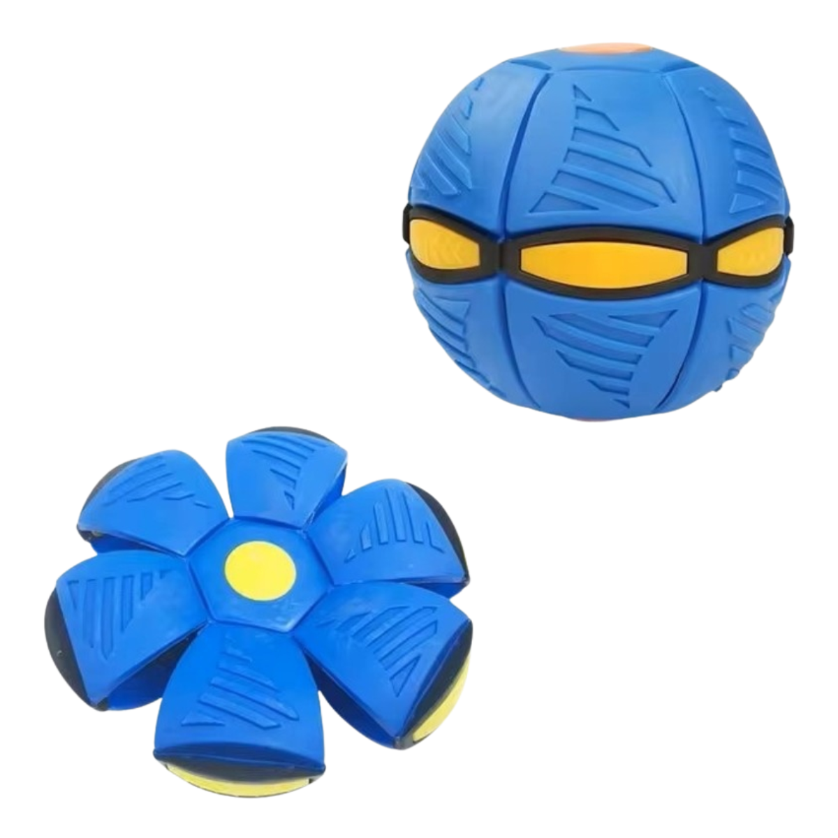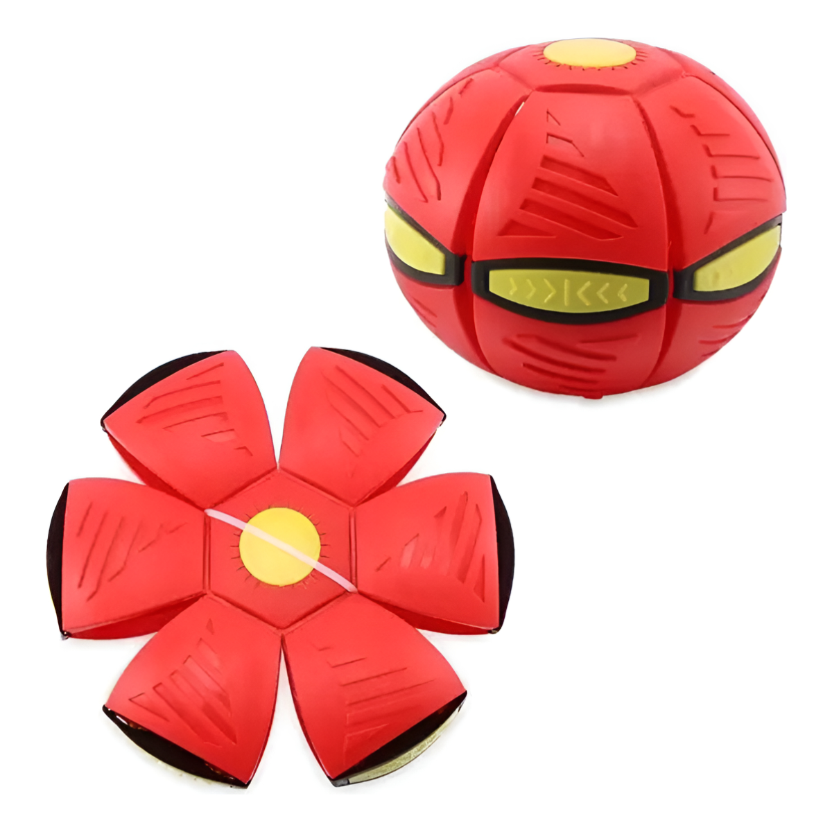 O grande segredo deste brinquedo é o seu design retrátil inteligente. Você a pressiona com as mãos para achatá-la, transformando-a em um disco voador. Ao ser arremessada, o mecanismo de ventosa ou mola se solta no meio do voo ou ao tocar o chão, fazendo com que o disco "estoure" e volte a ser uma bola redonda instantaneamente. Essa mudança repentina de forma enlouquece os cães, estimulando seus reflexos naturais.