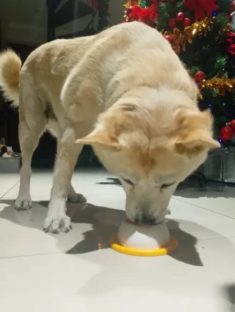- Mecanismo Giratório 360º: O funcionamento é simples e genial. Você coloca o alimento líquido ou pastoso na base (até a linha indicada) e encaixa a bola. Conforme o pet lambe, a bola gira e se "suja" com o alimento, fazendo com que ele precise continuar lambendo para comer. Isso faz o petisco render muito mais!