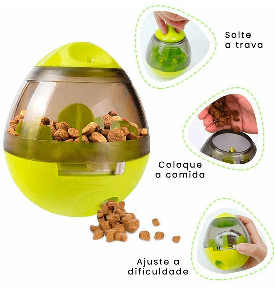 - TIPO: Comedouro Lento Interativo (Tumbler)