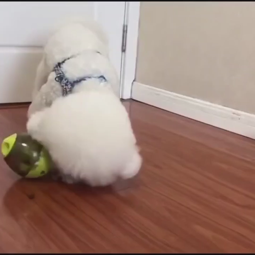 - Sistema "João Bobo": Graças à base ponderada e antiderrapante, o brinquedo balança para todos os lados sem tombar completamente. Esse movimento imprevisível mantém o cão focado e entretido, tentando "caçar" os petiscos que saem pelos orifícios.